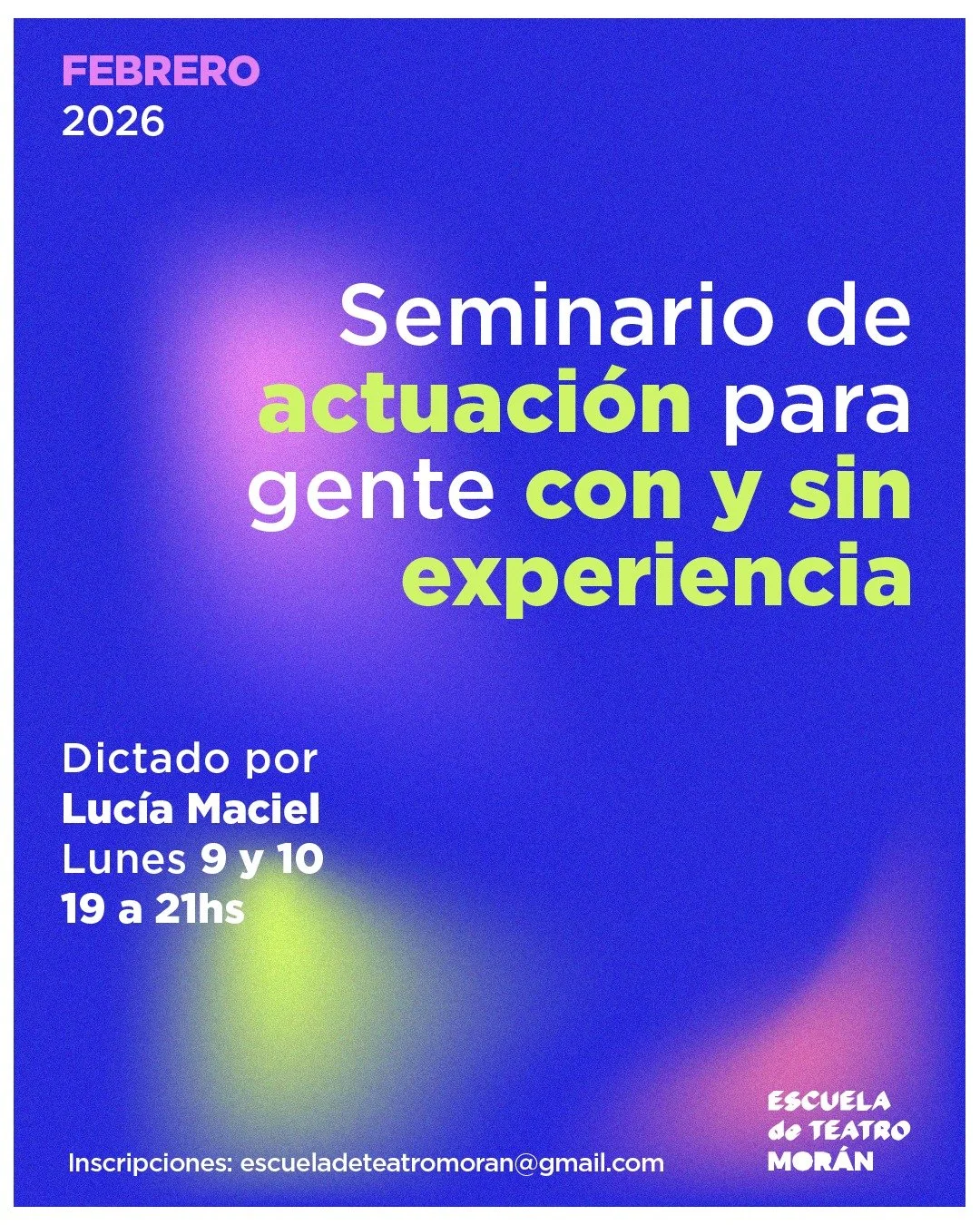 SEMINARIOS DE VERANO 2026 Clases intensivas para adultes con Lucia MacielFEBRERO INFO + INSCRIPCIÓN: >>> ACÁ escueladeteatromoran@gmail.com Andres Biscione17 de noviembre de 2023 Facebook0 Twitter Tumblr Pinterest0 0 Likes